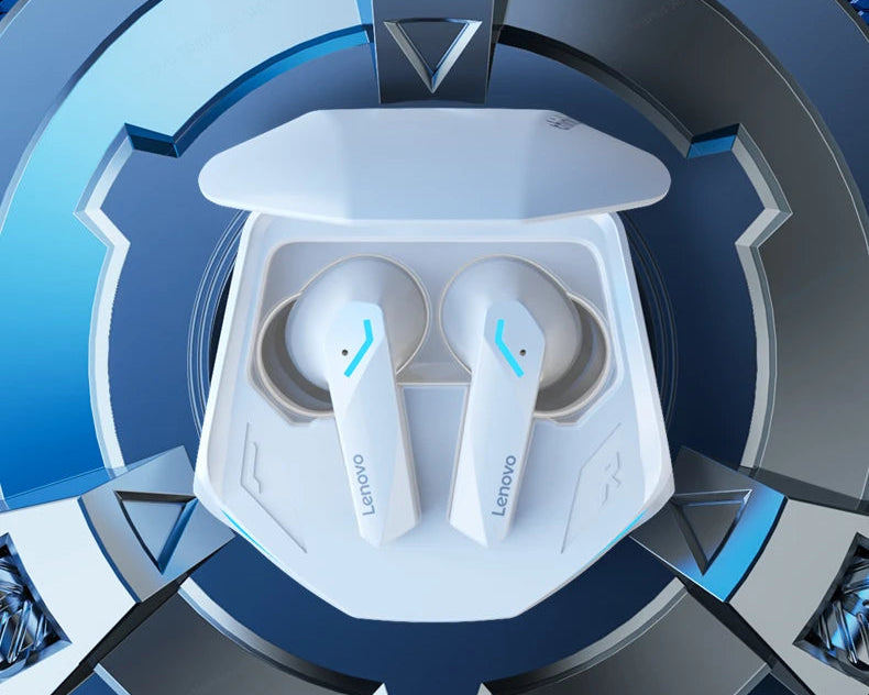 Os fones de ouvido para jogos de última geração da Lenovo em 2022. Modo duplo para música/jogo, chip de jogo personalizado, baixa latência para jogos, confortável de usar, decodificação de áudio AAC HD.